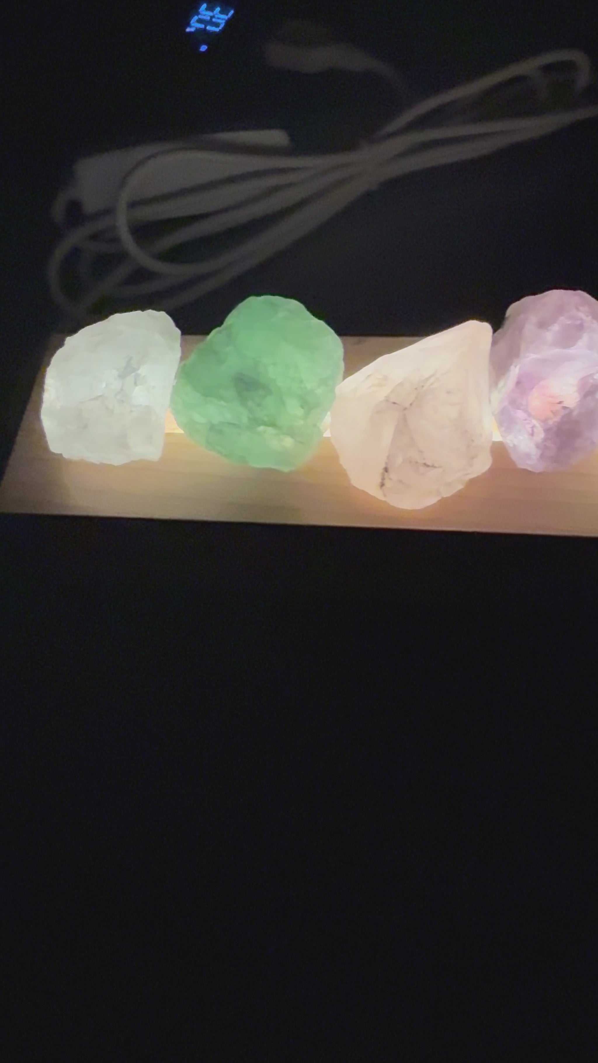 - Crystals sit freely above the light base