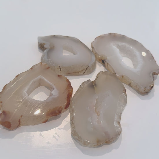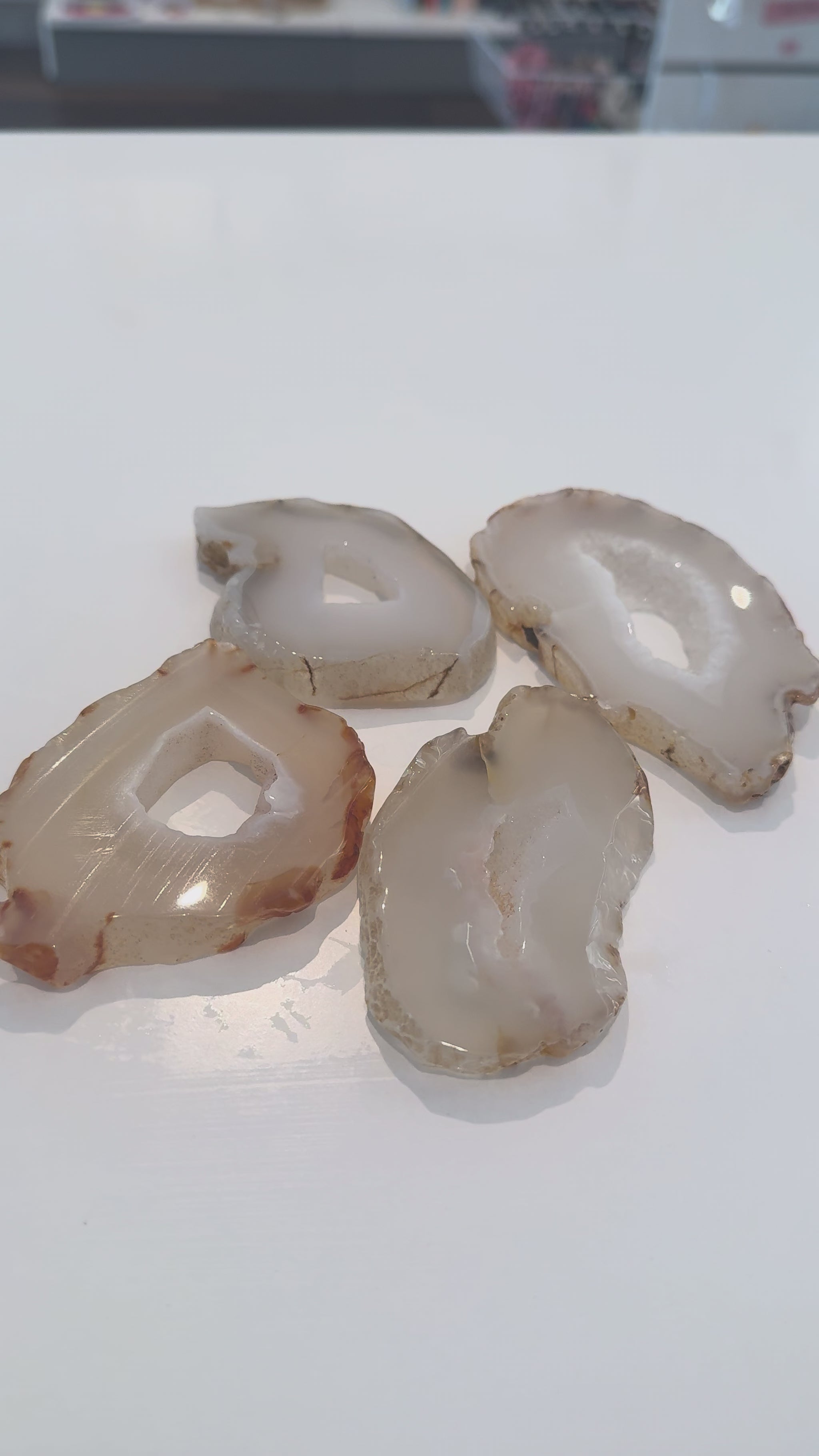 Expertly crafted and naturally beautiful, our Druzzy Agate Slices add a touch of elegance to any space. Each slice features unique and one of a kind patterns, making them a stunning addition to home decor, jewelry making, or art projects. Bring the beauty of nature into your home with these breathtaking agate slices.