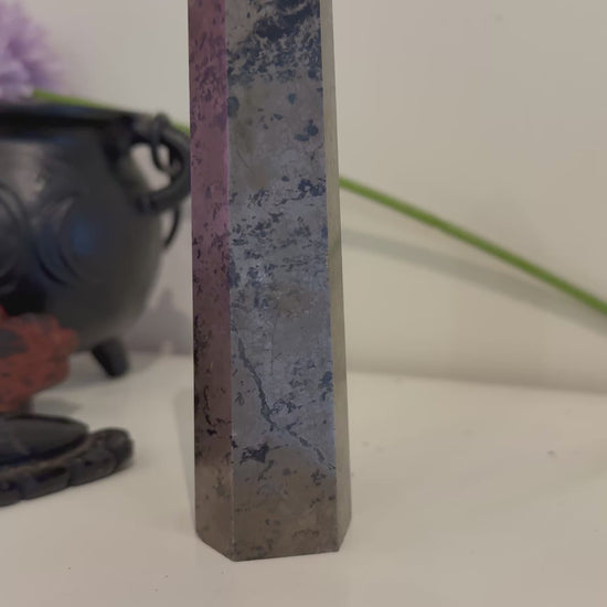 Experience the power of nature with our Natural Pyrite Crystal Tower. Hand-selected for optimal energy, this tower is a must-have for any crystal enthusiast. Harness the unique properties of pyrite to amplify your intentions and attract abundance into your life. Elevate your spiritual practice with this beautiful and powerful crystal tower.