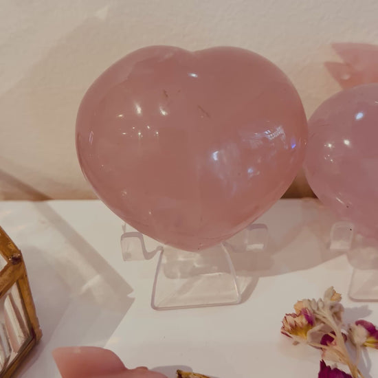 Introducing our enchanting Rose Quartz Crystal Hearts! We have two stunning sizes available: 7 cm x 7 cm and 6.6 cm x 5.7 cm. Made from genuine rose quartz, these beautiful hearts radiate soothing energy and inspire love and self-care. Perfect for enriching your crystal collection, they bring a delightful touch of positivity and emotional healing. Embrace the magic of these hearts and let their warmth uplift your spirit!